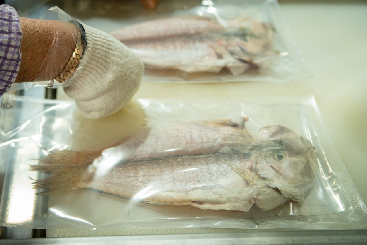옥돔은 원물상태로 들어와 직접 알맞게 소금 간 하여 반건조를 시켜 판매합니다.