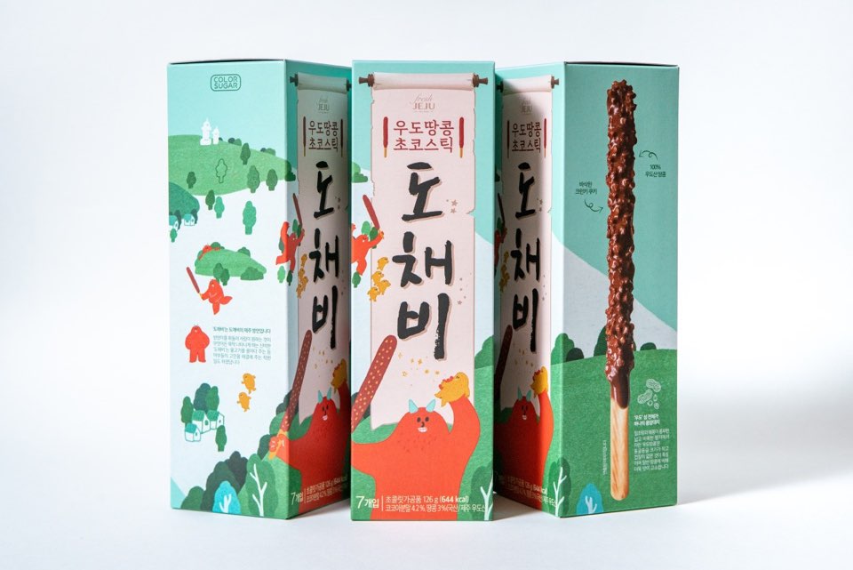 길다란 초코스틱에 우도땅콩이 콕콕 박혀있어 도깨비 방망이를 연상케 하여 붙여진 이름입니다.