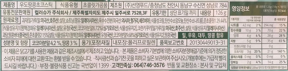 달지않고 고소해 선물용으로 주기 딱인 우도땅콩 초코스틱!