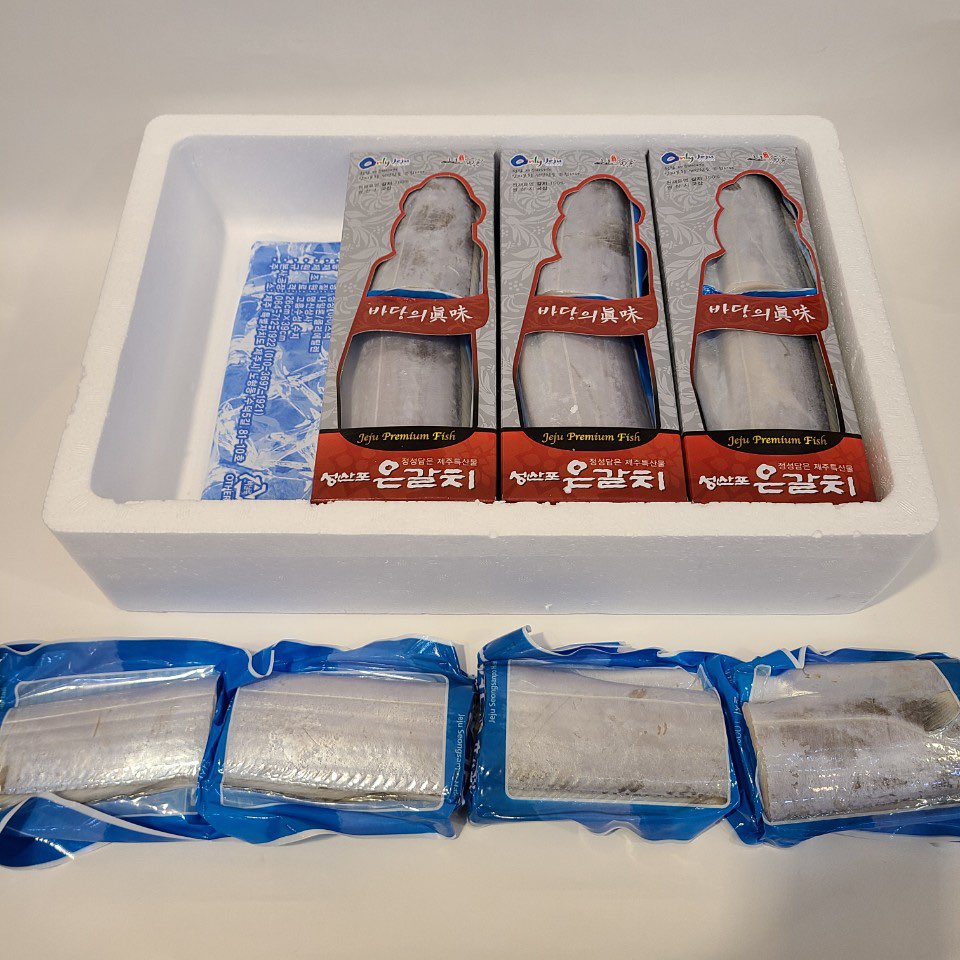 깨끗하게 손질한 후 급냉시켜 진공포장 한 제주산 은갈치입니다.